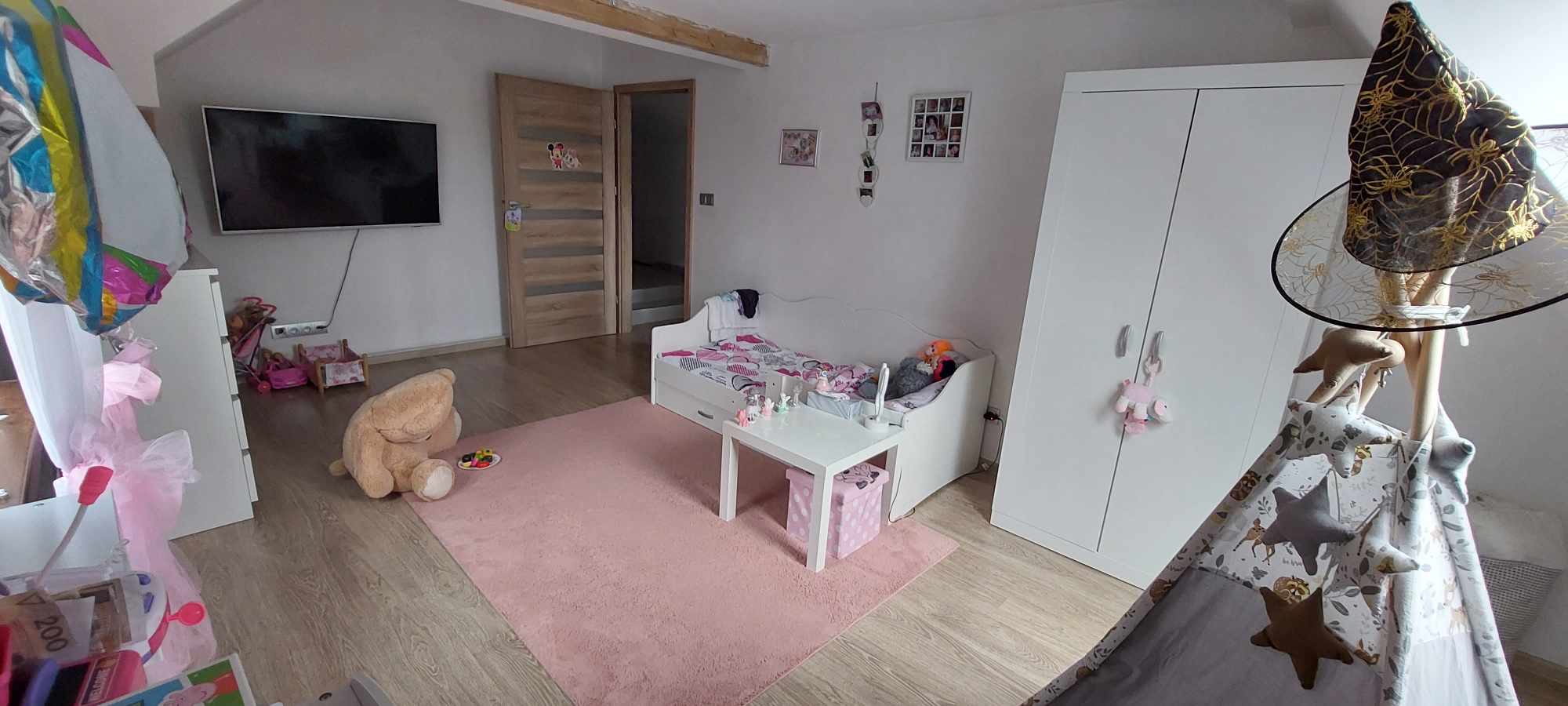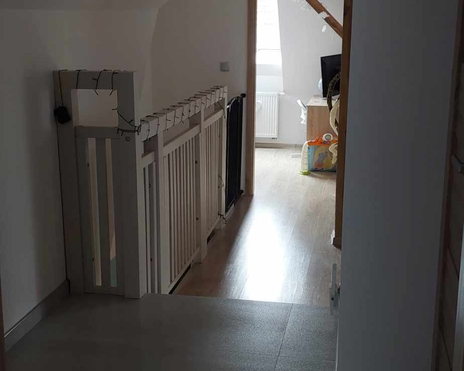 NA PIĘTRZE znajduje się: przedpokój z garderobą, wygodny pokój dzienny z jadalnią z wyjściem na taras, aneks kuchenny, hol, dwie duże sypialnie oraz komfortowa łazienka z wc.