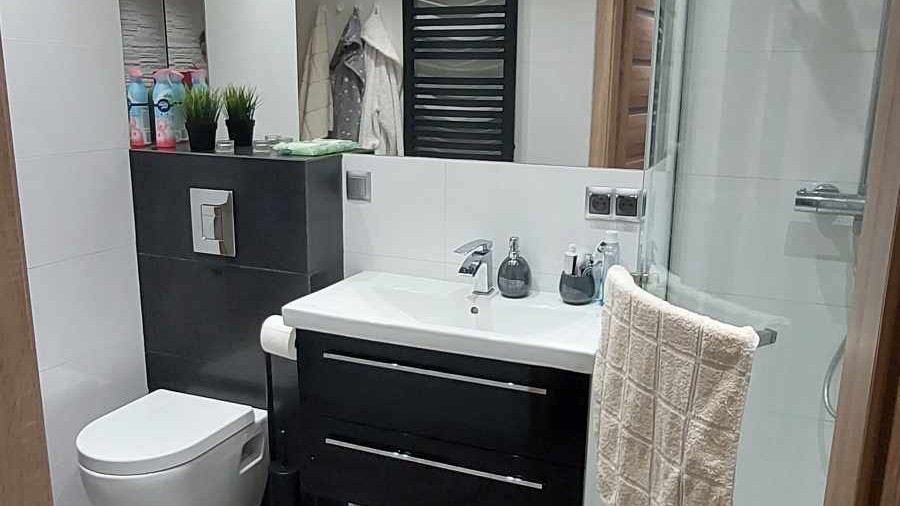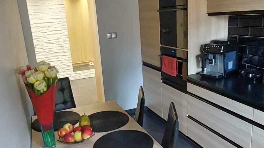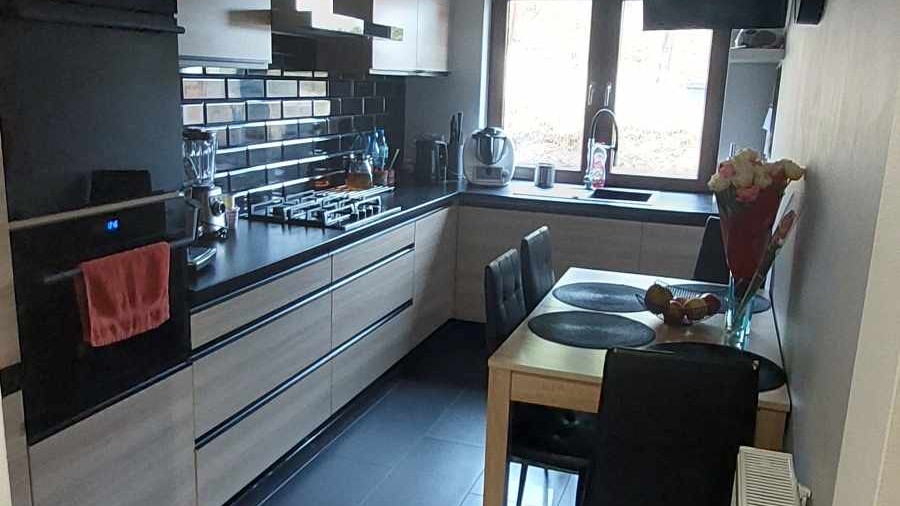 Ściany w pokojach szpachlowane i malowane w łazienkach i kuchni położono glazurę i terakotę, podłogi w sypialniach wyłożone wysokiej jakości panelami. Kuchnia w nowoczesnej zabudowie wraz ze sprzętem AGD.