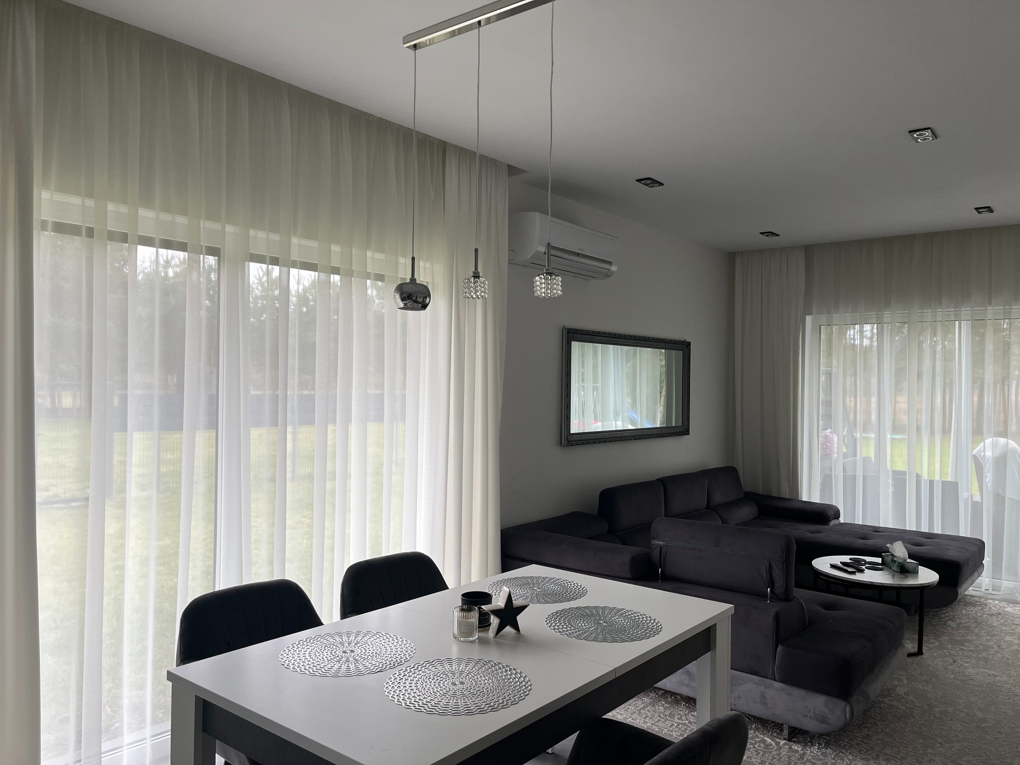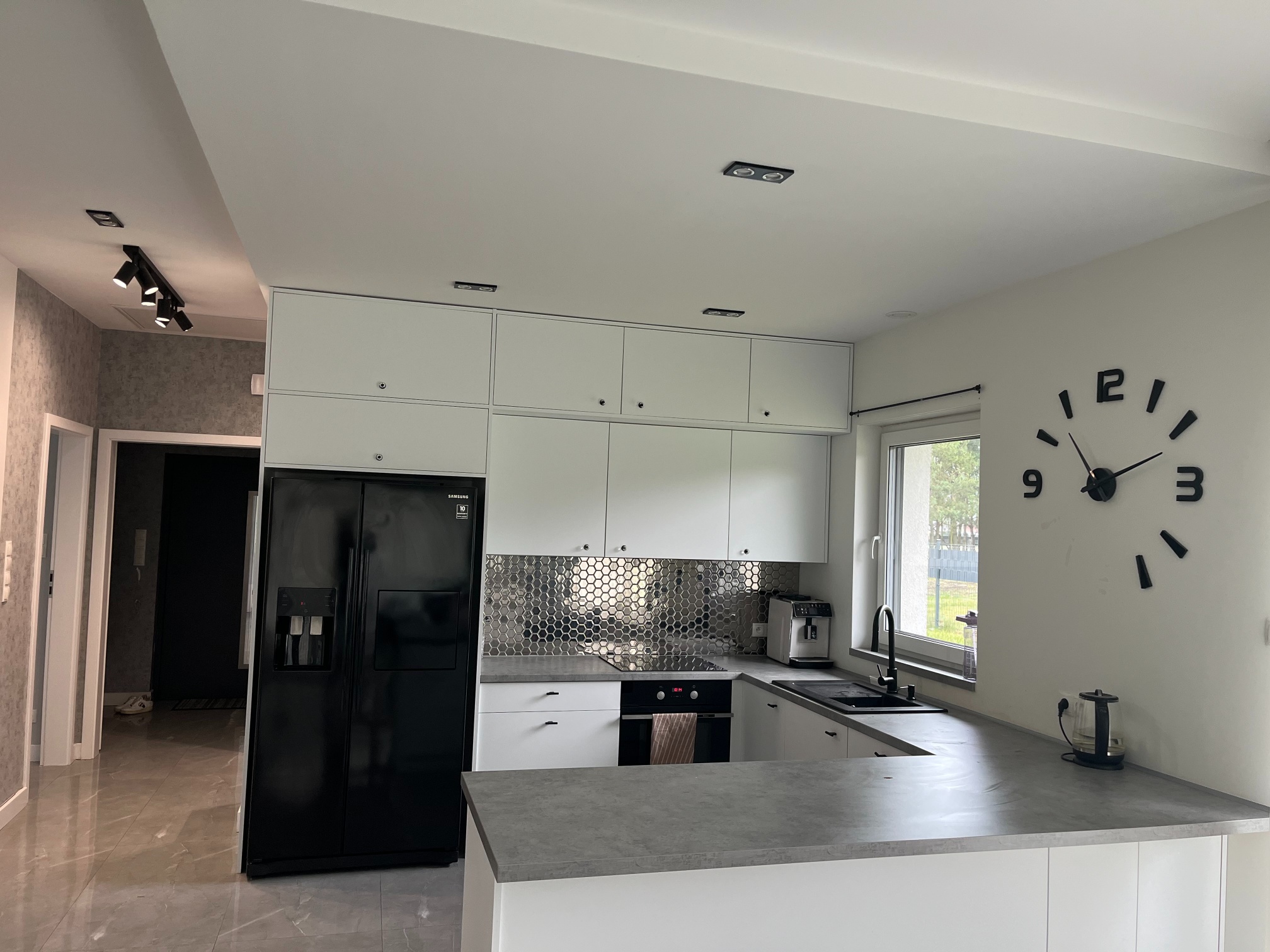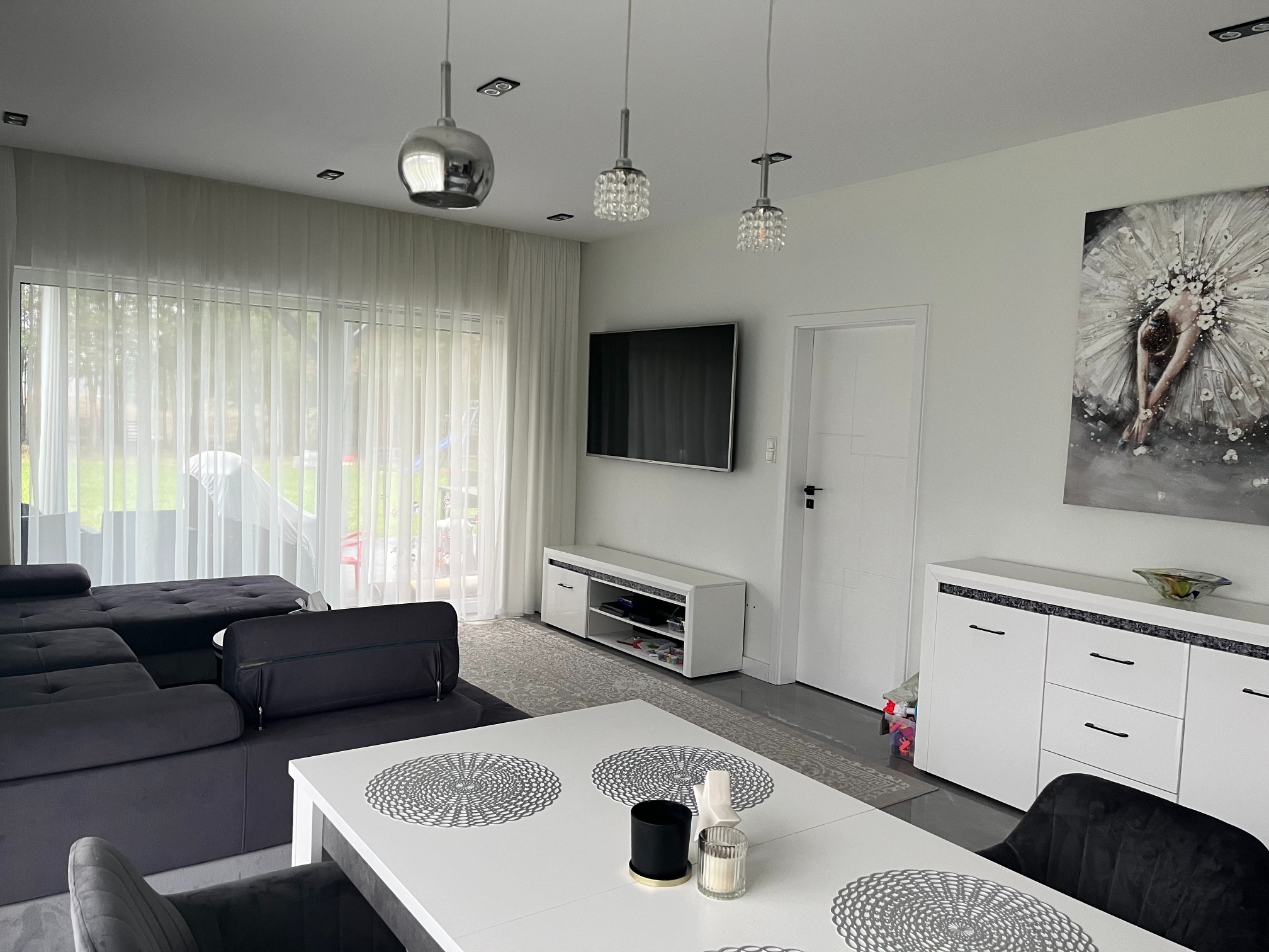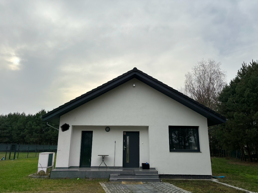 DOM WOLNOSTOJĄCY W ZABUDOWIE PARTEROWEJ w m. Maszewo, gmina Deszczno, 7 km od Gorzowa Wlkp. o powierzchni użytkowej 94,4 m2 z poddaszem użytkowym o pow. 35 m2, posadowiony na działce o powierzchni 2220 m2 w miejscowości Maszewo k. Deszczna. Dom w bardzo ładnej, nowoczesnej bryle. Budynek wybudowany i oddany do użytku w 2023 roku. W składzie domu do dyspozycji: duży salon z jadalnią, wyposażoną w najwyższej jakości sprzęt kuchenny i wyjściem na duży /35 m2/ dobrze wyposażony taras, hol, 3 sypialnie, 2 łazienki, w tym jedna z wanną, druga z nowoczesną /otwartą/ kabiną prysznicową. W części poddasza pomieszczenie gospodarcze o powierzchni użytkowej 35 m2. Ogrzewanie podłogowe: pompa ciepła, klimatyzacja. Media: prąd, woda, kanalizacja, pompa ciepła, światłowód, instalacja TV + antena satelitarna, instalacja komputerowa, alarmowa, antywłamaniowa. Działka ogrodzona ze wszystkich stron z bramą na pilota. Fotowoltaika (panele dachowe) – własne źródło energii, zabezpieczające w pełni potrzeby energetyczne dla całego domu. Liczne nasadzenia – 3 rzędy dorodnych drzew (sosna, świerk) na granicy działki. Dodatkowo studnia do podlewania trawnika i ogrodu. Dom wybudowany z najlepszych materiałów, budowany dla siebie. Korzystne położenie: w sąsiedztwie zabudowy domów jednorodzinnych.