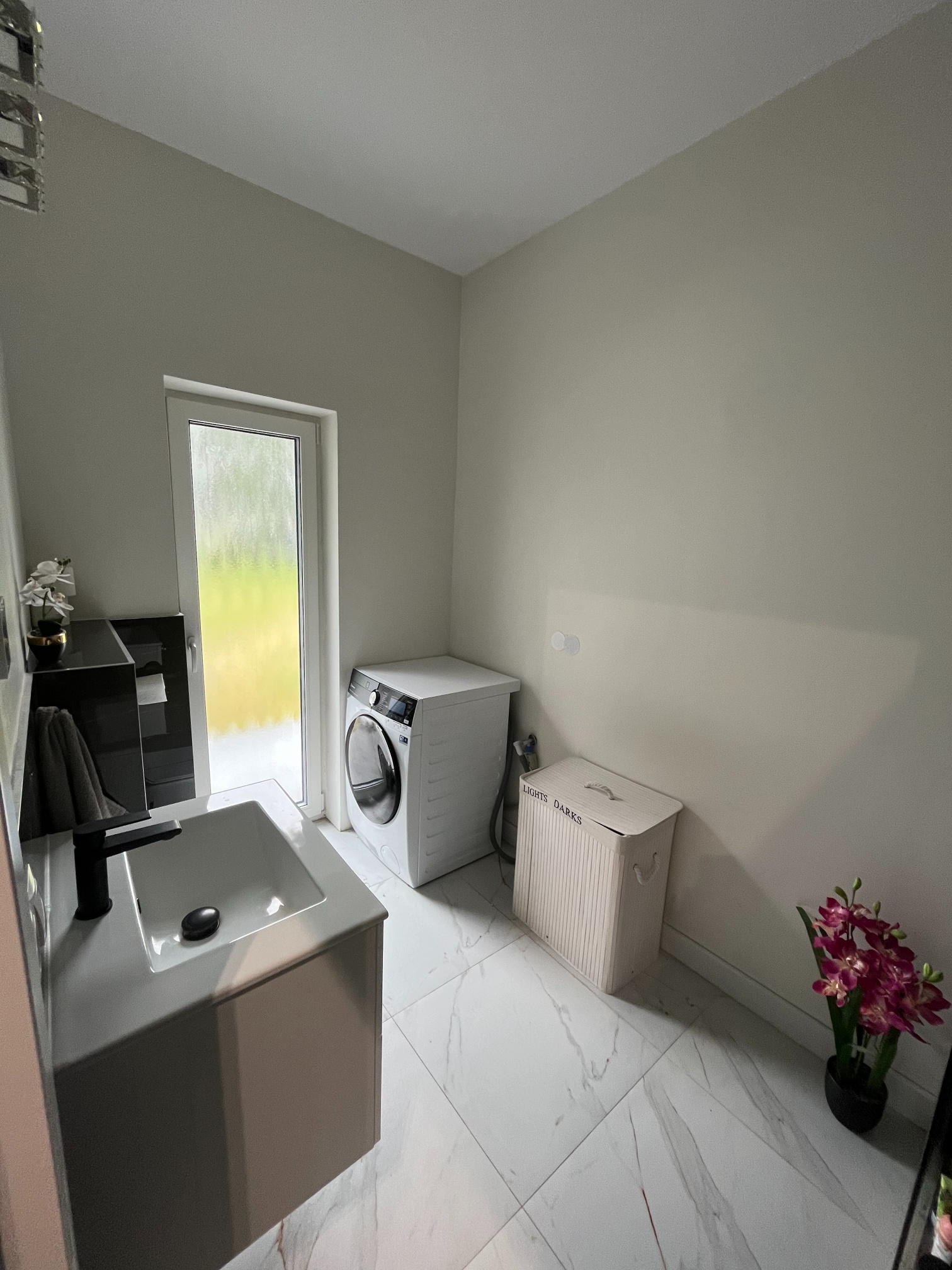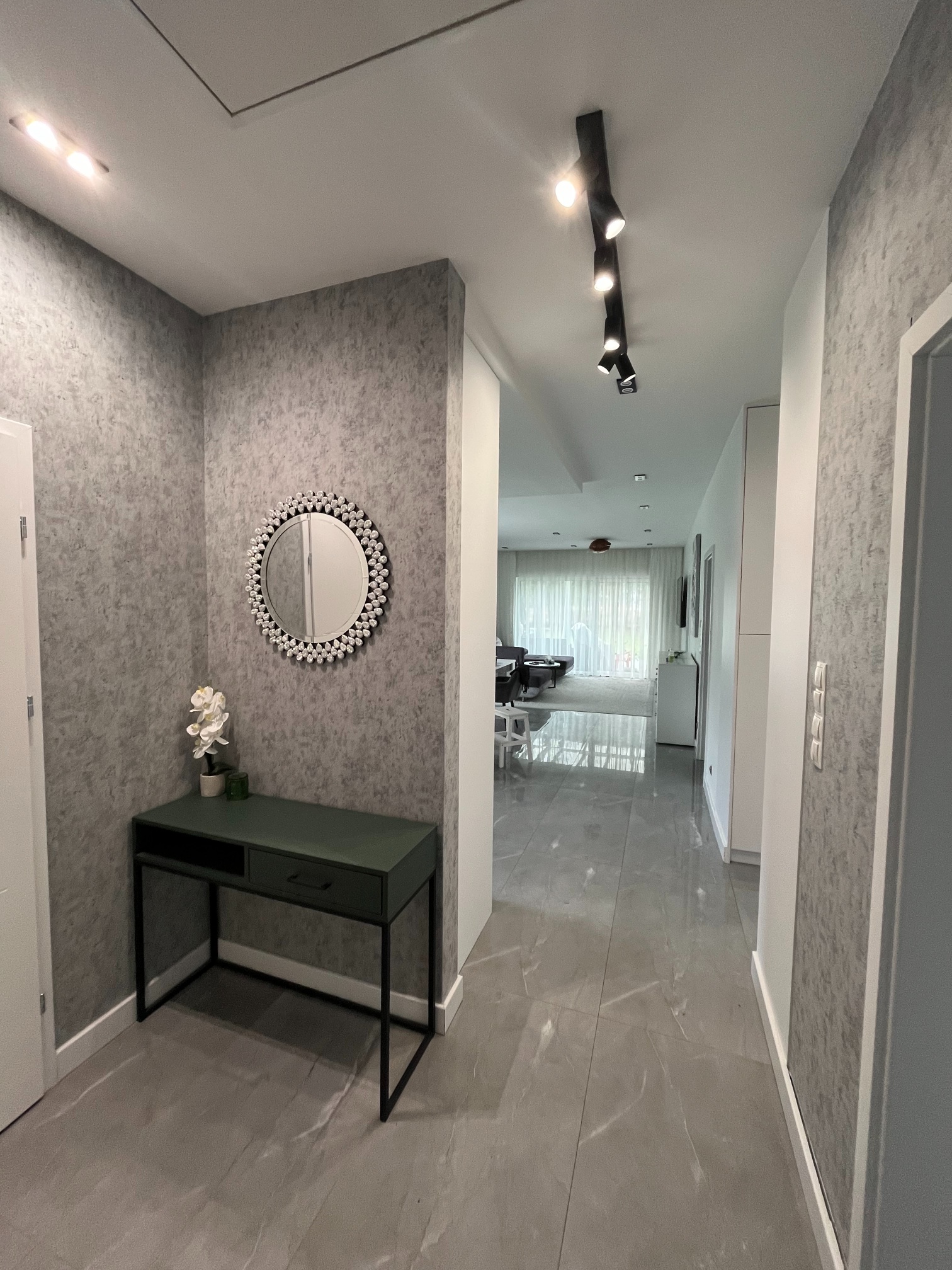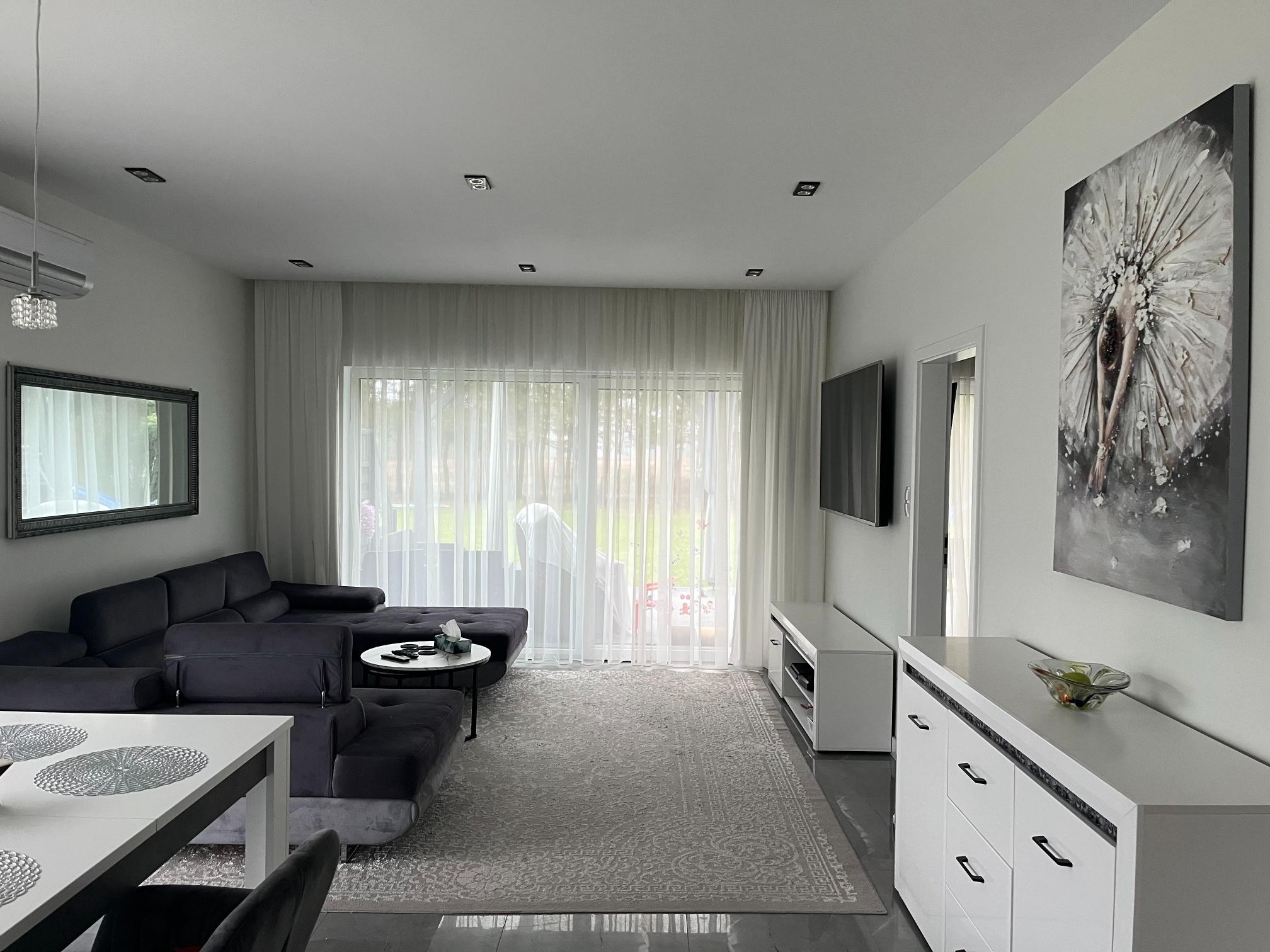 DOM WOLNOSTOJĄCY W ZABUDOWIE PARTEROWEJ w m. Maszewo, gmina Deszczno, 7 km od Gorzowa Wlkp. o powierzchni użytkowej 94,4 m2 z poddaszem użytkowym o pow. 35 m2, posadowiony na działce o powierzchni 2220 m2 w miejscowości Maszewo k. Deszczna. Dom w bardzo ładnej, nowoczesnej bryle. Budynek wybudowany i oddany do użytku w 2023 roku. W składzie domu do dyspozycji: duży salon z jadalnią, wyposażoną w najwyższej jakości sprzęt kuchenny i wyjściem na duży /35 m2/ dobrze wyposażony taras, hol, 3 sypialnie, 2 łazienki, w tym jedna z wanną, druga z nowoczesną /otwartą/ kabiną prysznicową. W części poddasza pomieszczenie gospodarcze o powierzchni użytkowej 35 m2. Ogrzewanie podłogowe: pompa ciepła, klimatyzacja. Media: prąd, woda, kanalizacja, pompa ciepła, światłowód, instalacja TV + antena satelitarna, instalacja komputerowa, alarmowa, antywłamaniowa. Działka ogrodzona ze wszystkich stron z bramą na pilota. Fotowoltaika (panele dachowe) – własne źródło energii, zabezpieczające w pełni potrzeby energetyczne dla całego domu. Liczne nasadzenia – 3 rzędy dorodnych drzew (sosna, świerk) na granicy działki. Dodatkowo studnia do podlewania trawnika i ogrodu. Dom wybudowany z najlepszych materiałów, budowany dla siebie. Korzystne położenie: w sąsiedztwie zabudowy domów jednorodzinnych.
