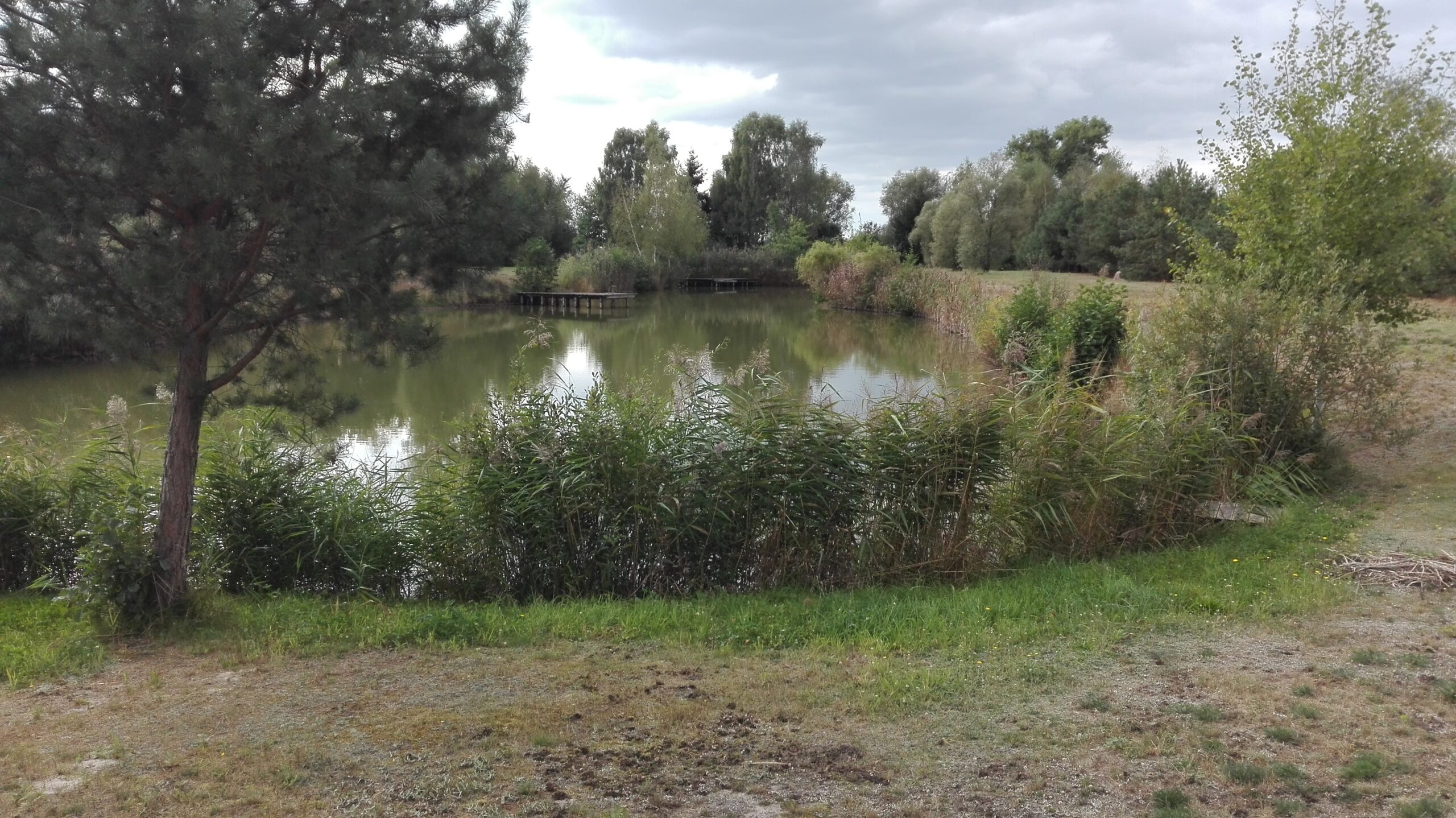 Działka ogrodzona, zarybiony staw o powierzchni 3200 m2 z dwoma pomostami do wędkowania i rekreacji, zadrzewiona kilkunastoletnimi drzewami liściastymi i